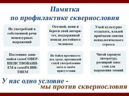 3 февраля отмечается Всемирный день борьбы с нецензурной лексикой. Этот день призван привлечь внимание к проблеме использования ненормативной лексики и повысить осведомленность о значимости культуры речи и сохранении чистоты родного языка. Районная библиотека провела беседу со старшеклассниками "Культура речи и чистота родного языка." Выступавшие на мероприятии обсудили негативное влияние ненормативной лексики на культурное развитие. Мат, в отличие от сленга и жаргона, не допускается в общественных местах и вызывает неодобрение в обществе. Тем не менее, специалисты по языкознанию фиксируют рост популярности нецензурной лексики среди жителей России. Употребление ненормативной лексики не всегда говорит о высоком уровне интеллекта. По мнению специалистов, регулярное и неконтролируемое употребление грубых выражений окружающими воспринимается как показатель ограниченного словарного запаса, эмоциональной нестабильности и низкого культурного уровня. Сегодня мы можем начать работать над тем, чтобы избавиться от нецензурной лексики.