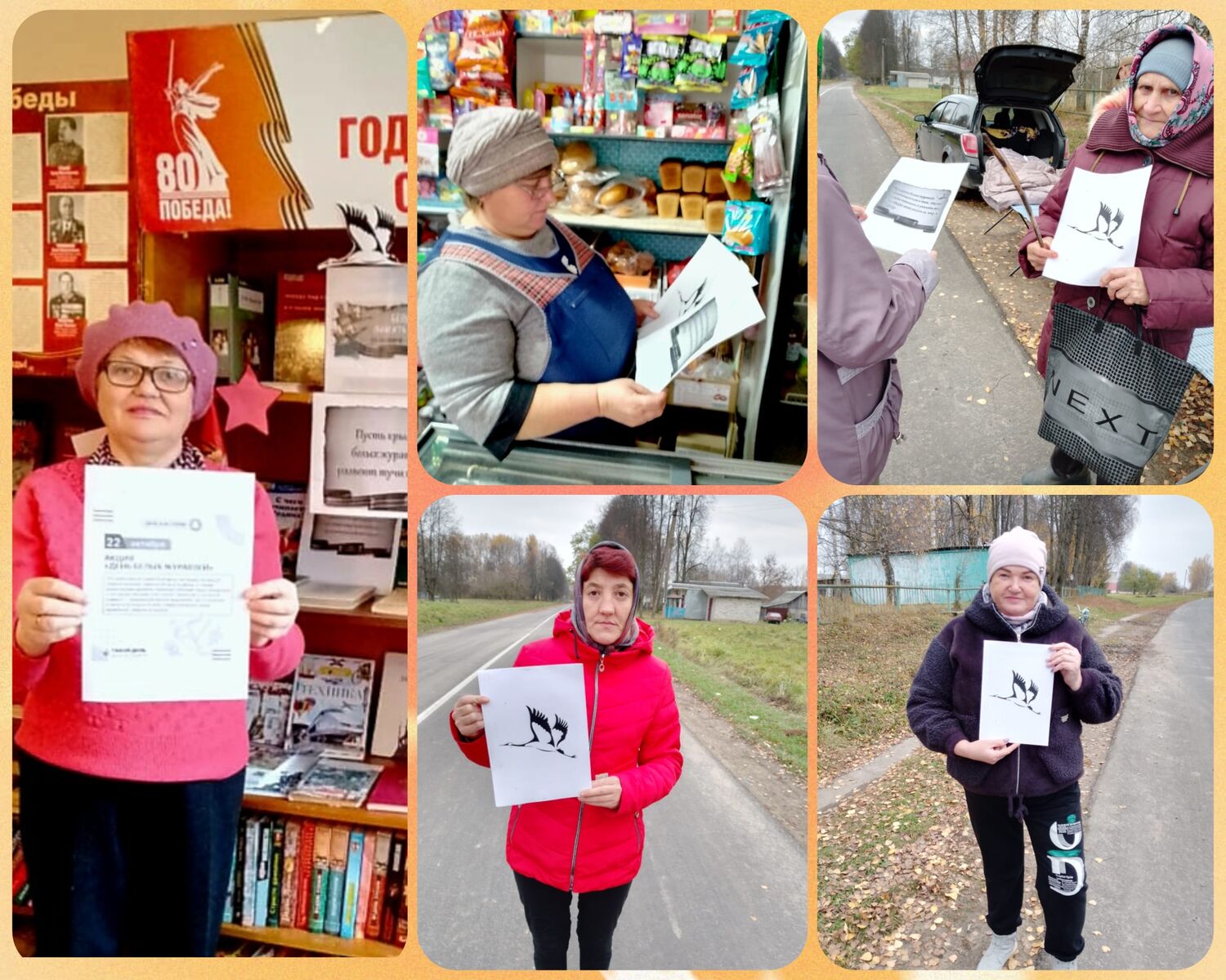 Каждый год 22 октября проводится акция «День Белых Журавлей». В этот день мы вспоминаем солдат, отдавших свои жизни за свободу и независимость нашей Родины. Библиотека села Тюнино активно участвовала в организации этого памятного мероприятия. Библиотекарь Л.Л. Василькова провела просветительскую работу среди местных жителей, школьников, педагогов и сотрудников магазинов.