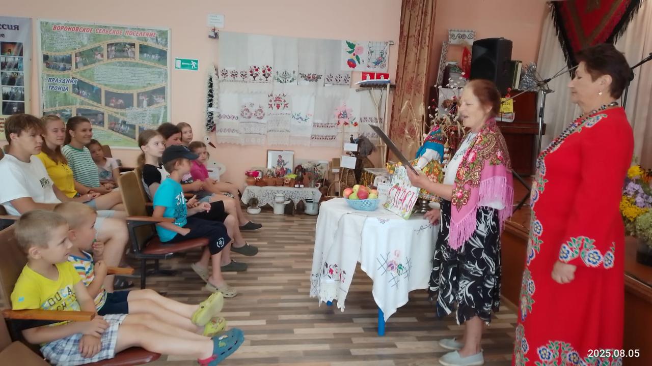 Множество россиян считают важным возрождение народных праздников в стране. Они полагают, что это способствует сохранению культурно-исторических традиций. Август богат на христианские праздники — три Спаса. Их отмечают в разгар летнего урожая, когда природа щедро делится своими дарами. Эти праздники объединяют народные и религиозные традиции. Каждый Спас уникален и имеет свое значение, но все они связаны с Иисусом Христом, Спасителем, поэтому и называются Спасами. Праздники сменяют друг друга: Медовый, Яблочный и Ореховый. Вороновская сельская библиотека и дом культуры подготовили интересное мероприятие. Присутствующих познакомили с обычаями, традициями, народными приметами, рассказали, что главным считается Яблочный Спас, в этот день принято печь пироги, варить варенье, угощать яблоками. Гости охотно приняли участие в тематических викторинах и конкурсах.